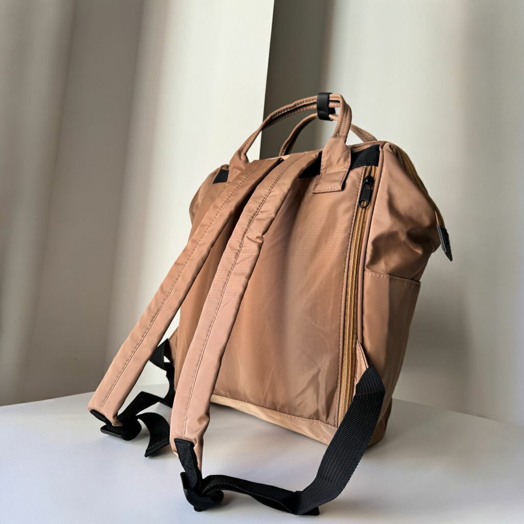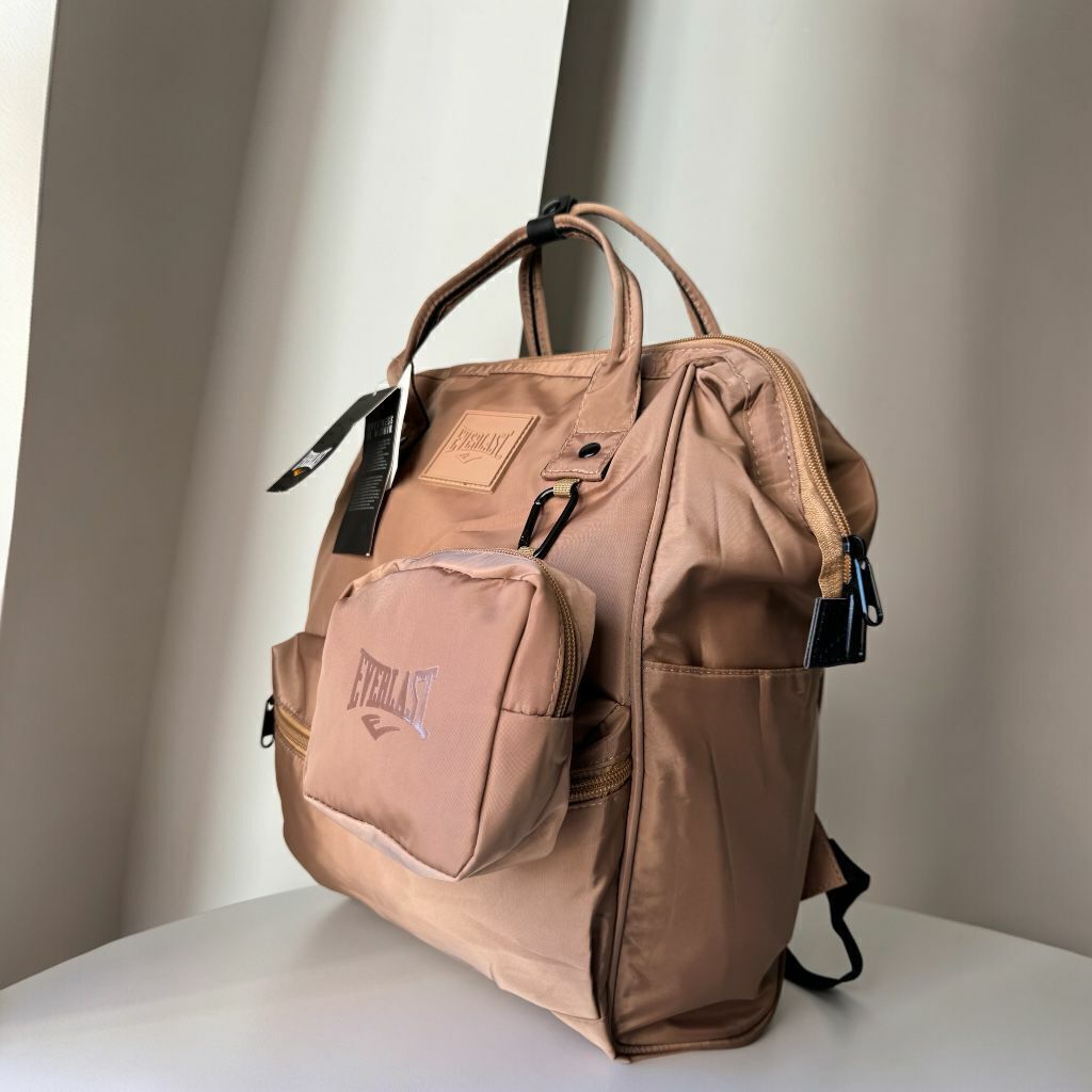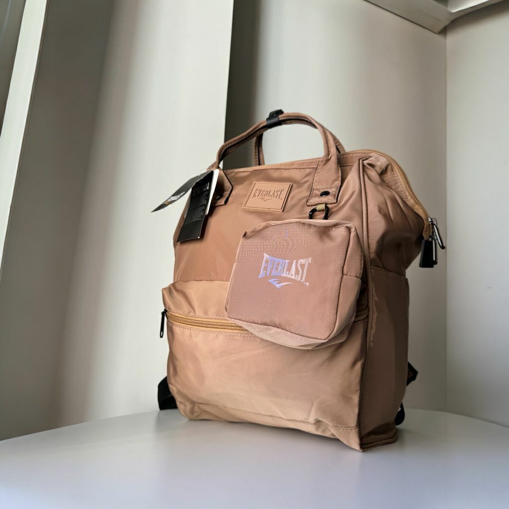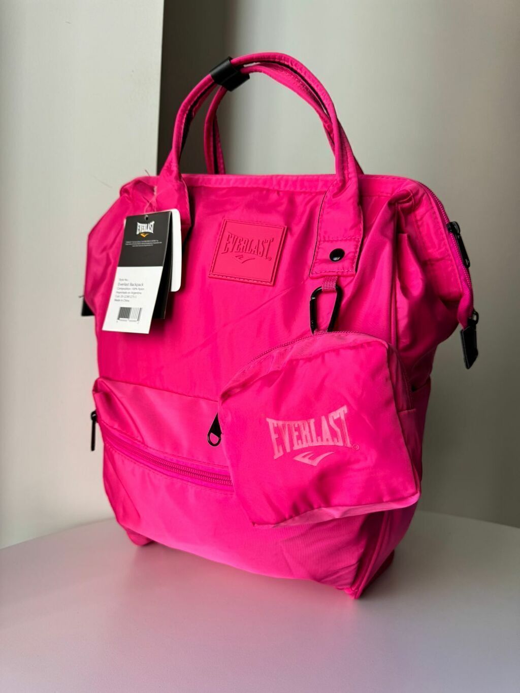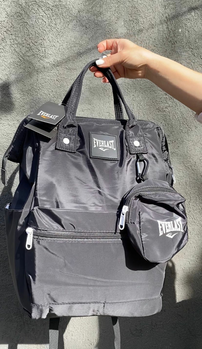 Material: 100% nylon. Posee un compartimiento, un bolsillo frontal y un bolsillo antirobo, todos con cierre. Incluye 2 compartimientos simples en su interior y un bolsillo con cierre, el interior forrado en tela, dos portaboltellas a los costados y monedero removible. Medidas: 40 cm de alto x 25 cm de ancho x 18 cm de profundidad. Medidas del monedero: 11 cm de alto x 11 cm de ancho x 5 cm de profundidad.